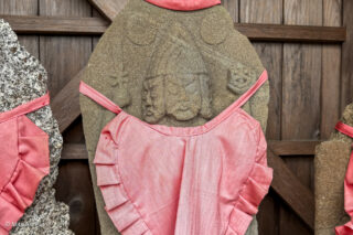 永昌寺の青面金剛 多気町野中 多気町 X Facebook はてブ Pocket LINE コピー 2024.04.09 永昌寺の眠り地蔵さんのことは 別のブログに書いたのですがきょうは地蔵さんの隣の庚申さんです わりあい大きな格子ですが 奥行きが短いので 写真撮れるかなあところどころに彩色のあとが残っているようにもみえます 写真では歪んでしまいますが こんな感じの青面金剛さんです舟形光背に刻まれた一面六臂の青面金剛 右手に剣 三叉戟 箭左手には人 法輪 弓ですね 桜が満開でした