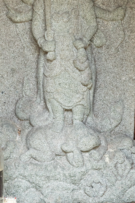 足元に鬼 さらにその下に三猿がいます