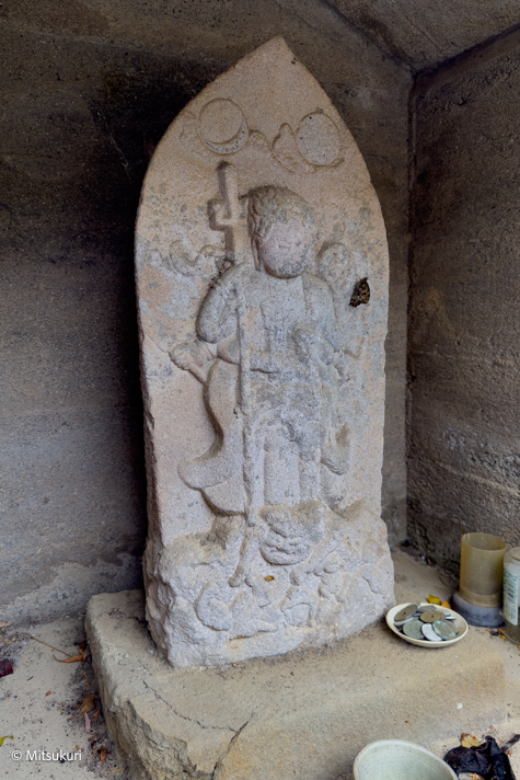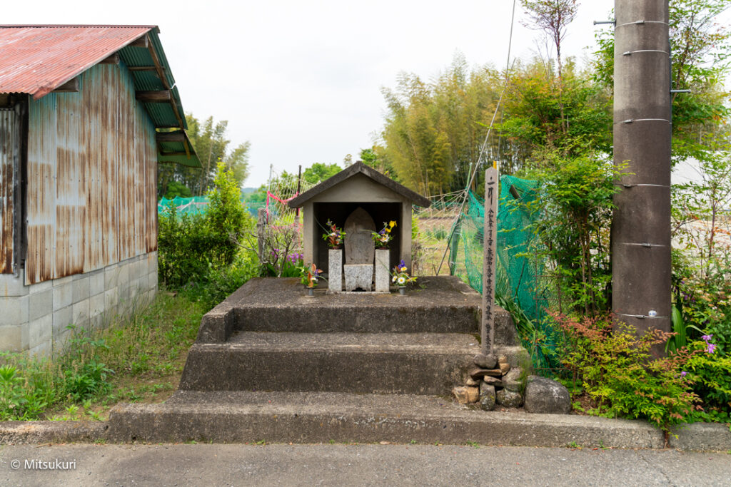 県道まで出て少し南に歩くと 左手の路傍に道標が立っています