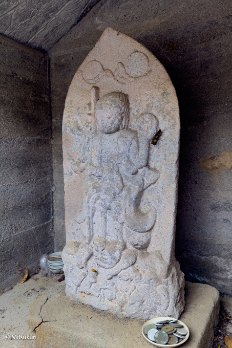 祠の中の青面金剛は 舟形光背に刻まれた三面六臂の像です