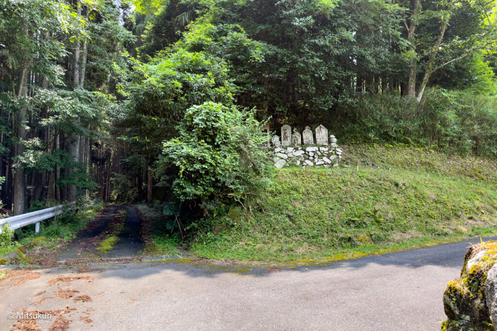 林道への入り口の傾斜地に石碑や小石仏の集積があります