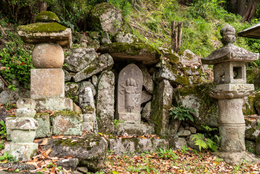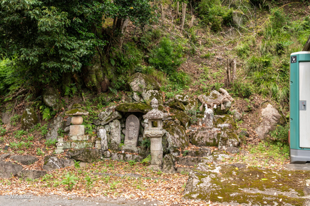 県道沿いにある公民館の隣に 石灯籠や小石仏の集積がありました