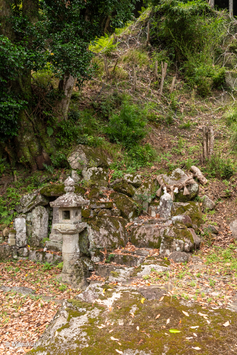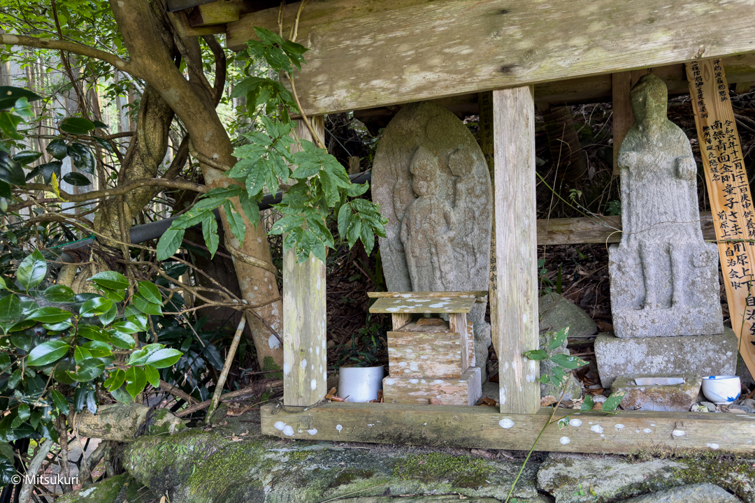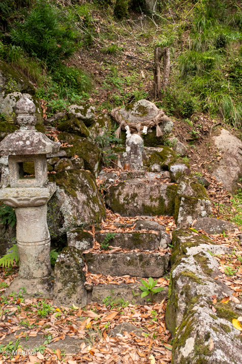 隣にある山神碑 その奥にはしめ縄を張った小さな磐座があって