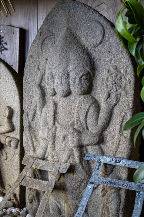 左側の少し小ぶりな庚申さんは 一面六臂の青面金剛です