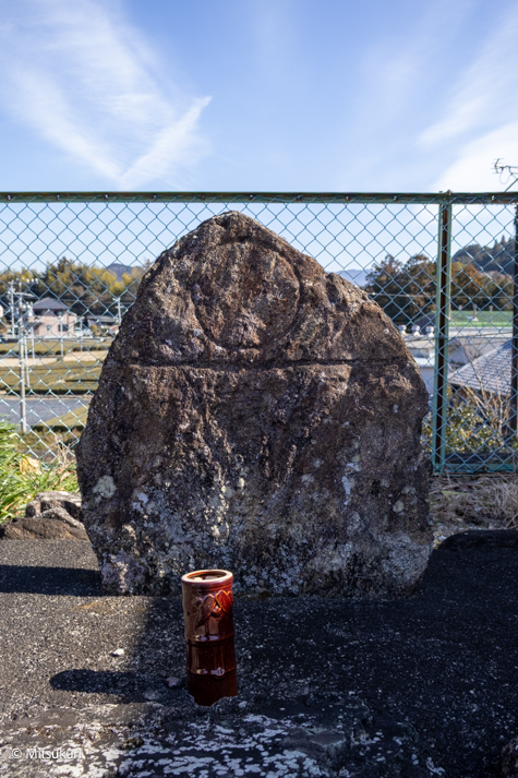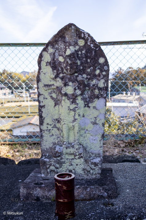 駒形石の上部に月輪を刻んで その下に板碑段型の名残の一条の横線を残しています