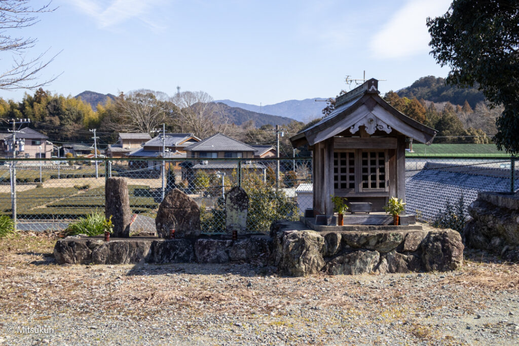 境内の隅の方に 小さなお堂と一緒に 小石仏が三基並んでいます