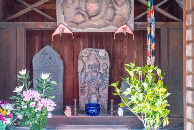 久志本墓地は何度か訪ねたことがあって 県道から墓地への入り口に 六地蔵さんと並んで祠があることは知っていましたが 中を覗いてみるのは初めてでした地蔵さんらは平入り 庚申さんは妻入りの マンション形式になっています右側に駒形石に薬研彫の庚申塔...